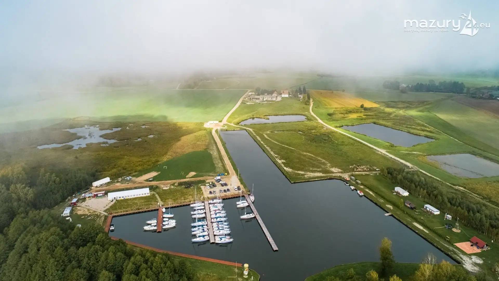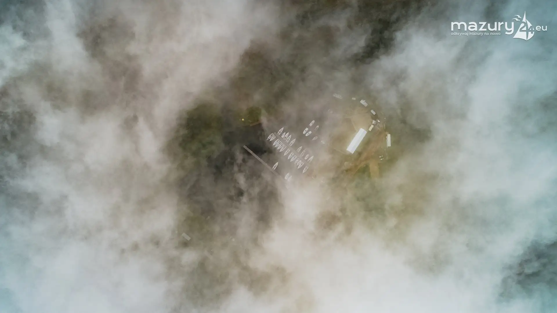 Przyjechaliśmy w piątek - padało, w sobotę miało być piękne słońce, było ale na innej szerokości i długości geograficznej. Temperatura na regatach wynosiła około 10 stopni, wieczór to już mocne 3 stopnie. Gorąco jednak było i tego wieczora nigdy nie zapomnimy. Wszystkim, którzy powiedzą że klimat żeglarstwa i magii Mazur zanika - mówimy stanowcze NIE. W nocy temperatura spadła poniżej zera, a my po przebudzeniu ciągle czekaliśmy na słońce i możliwość zrobienia dla Was ciekawych zdjęć. Poranna mgła była wszędzie! Czekając na słońce, postanowiliśmy w teorii sprawdzić wpływ mgły na drona - niestety w mgle nie powinno się z bardzo wielu powodów latać...
