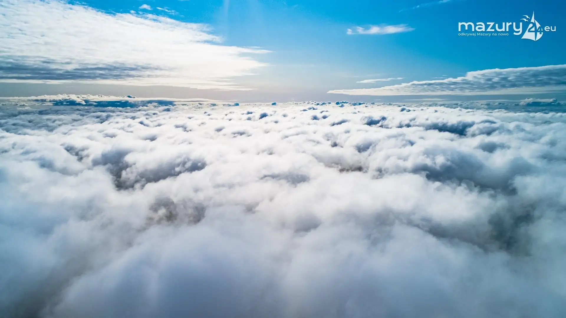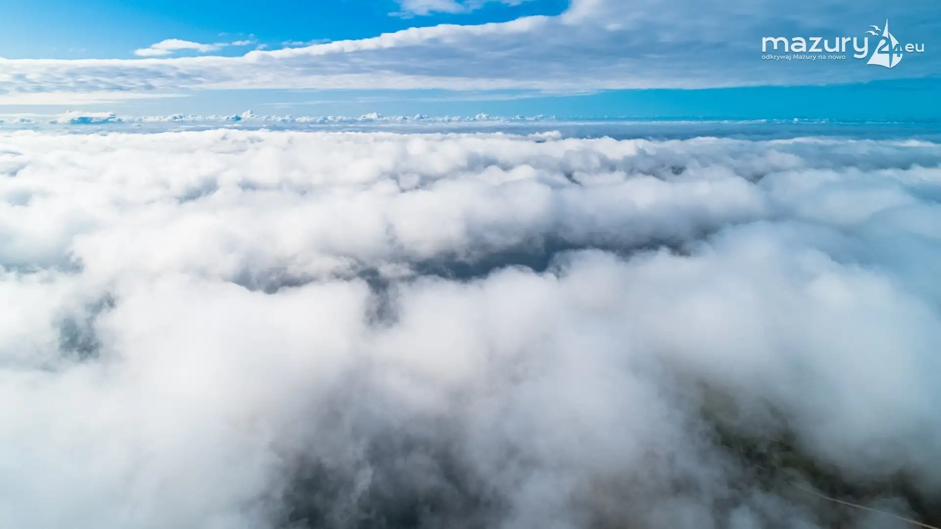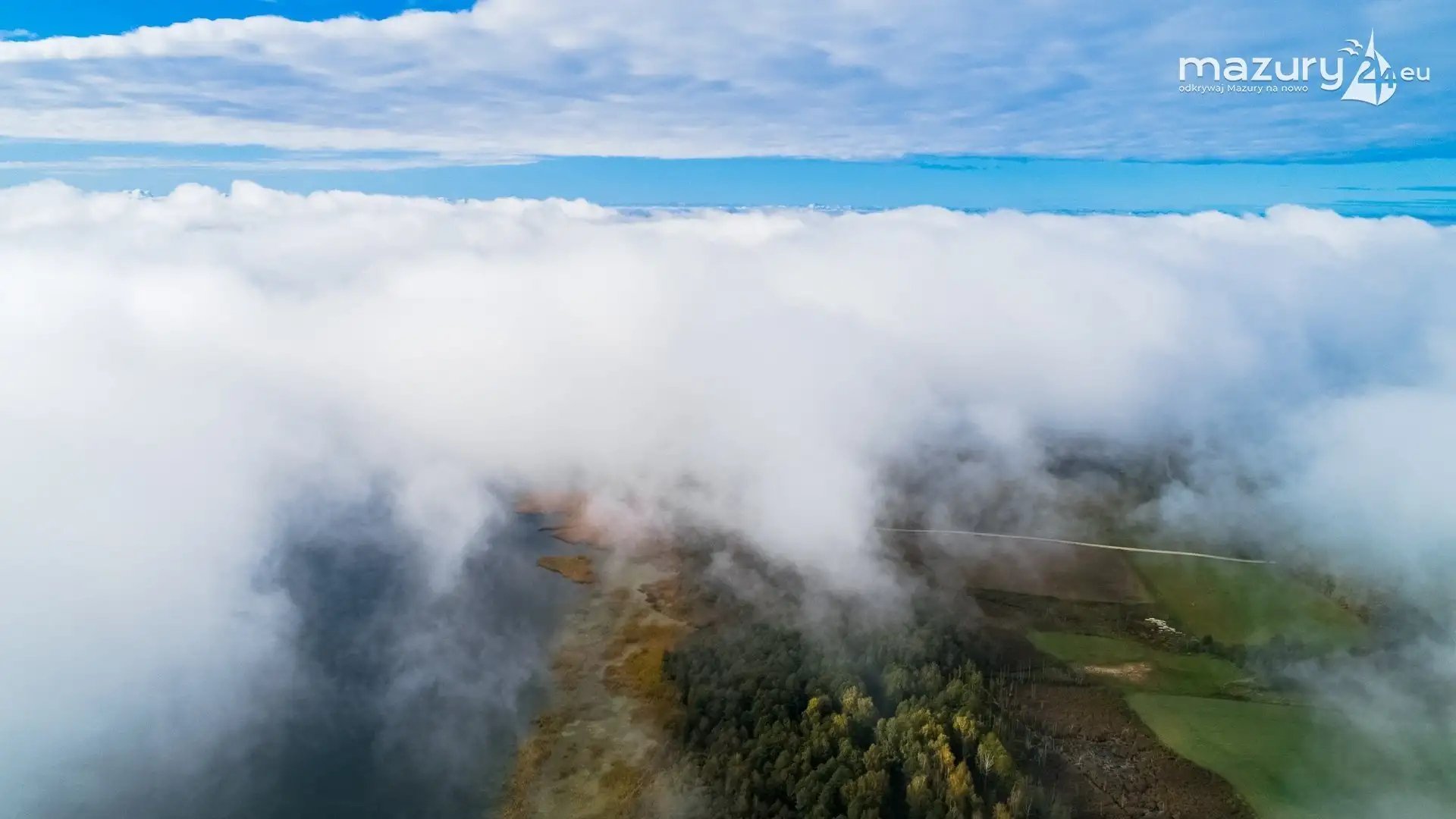 Nie było widać jeziora, brzegu, nas na dole... Była tylko mgła pod nami, słońce i niebieskie niebo... Widok niczym z samolotu - jednak te raczej nie latają na wysokości 100m. Utrzymując drona w powietrzu czekaliśmy, aż znów pojawi się widoczność. Moment czekania na możliwość powrotu (bez przelatywania przez mgłę) wykorzystaliśmy aby wykonać dla Was zdjęcia - możecie się z nimi zapoznać w poniższej galerii zdjęć...