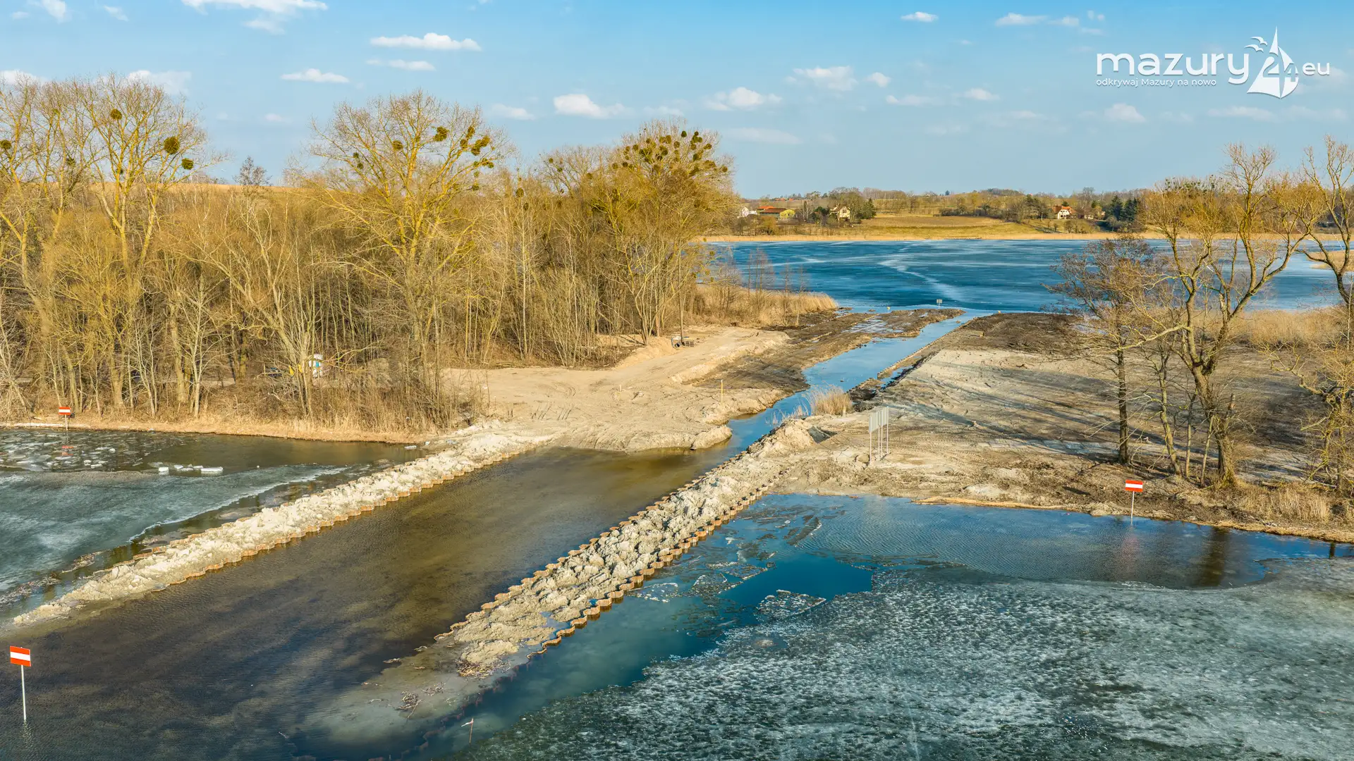 Równolegle z zaawansowanymi pracami inżynieryjnymi prowadzone są działania porządkowe, które nadadzą kanałowi ostateczny szlif. Skarpowanie brzegów, zapewnienie bezpiecznych spadków terenu oraz instalacja nowoczesnego oznakowania sprawią, że odcinek ten stanie się wzorcowym elementem mazurskiej sieci wodnej.