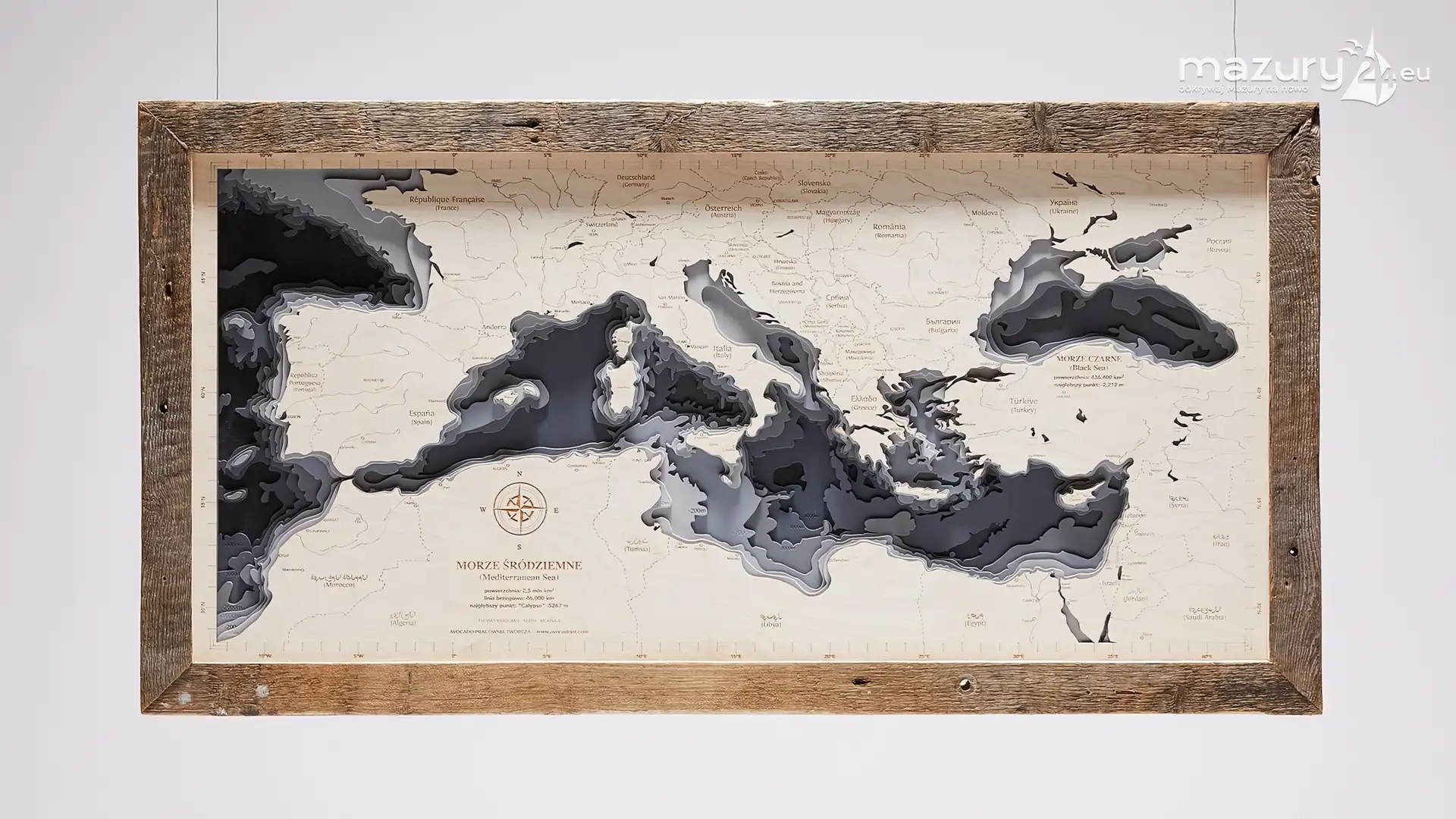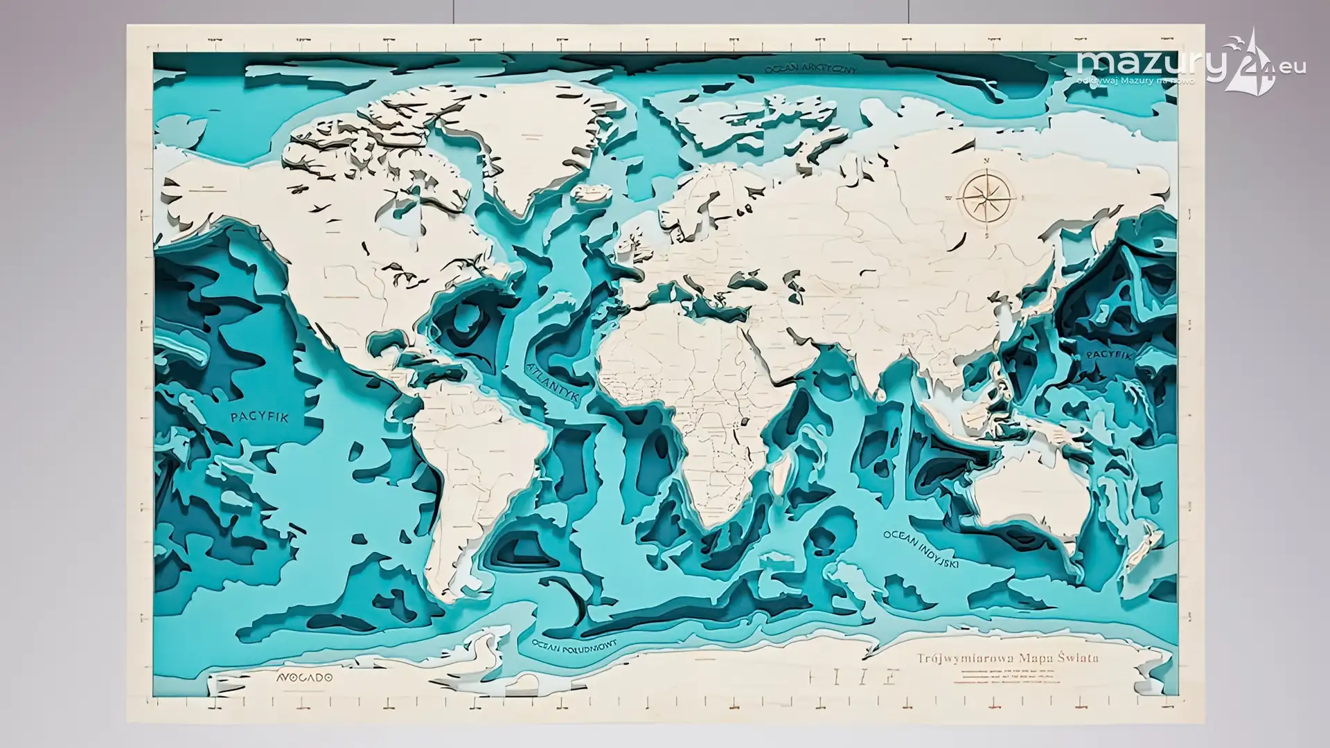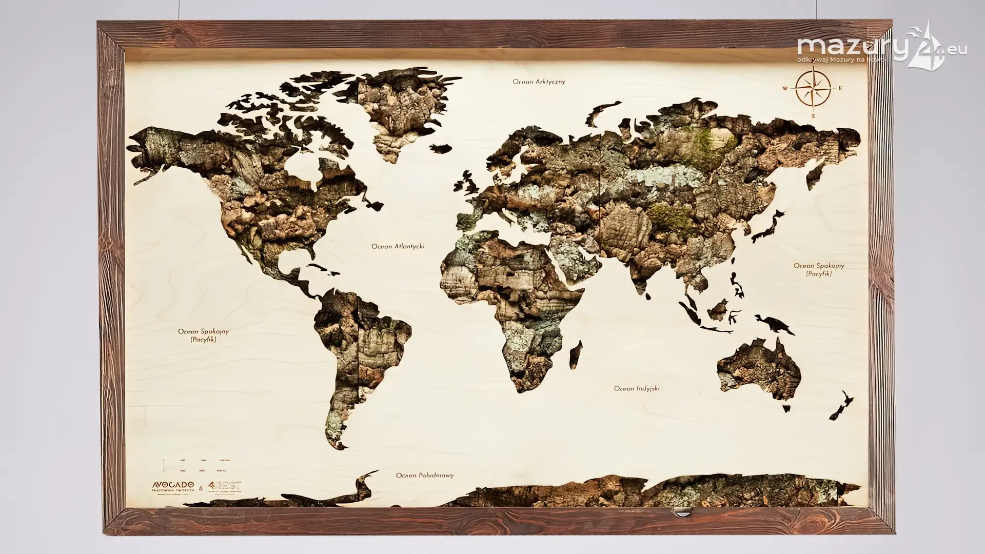 Avocado - Pracownia Twórcza wykonuje piękne drewniane mapy: morskie, kontynentów, świata, Europy, krajów, miast i... naszych ukochanych Mazur.