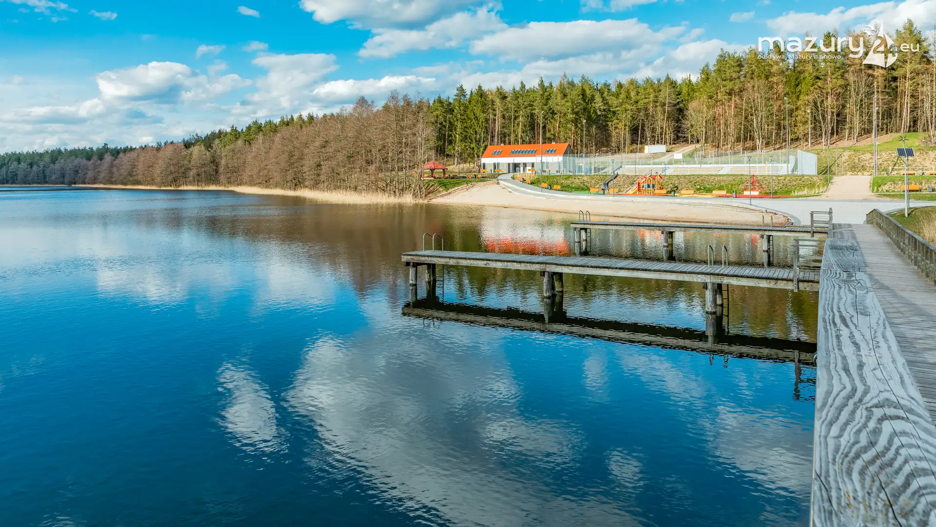Zamiast palm wiekowe mazurskie świerki i sosny z dobroczynnymi olejkami eterycznymi, czysta woda, a w niej pląsające ryby i aromatyczny tatarak. Do tego przyjemny piasek, taras wypoczynkowy, zjeżdżalnia, obszerne miejsca relaksu i aktywnej rekreacji oraz strefa palenia ognisk z altaną grillową.