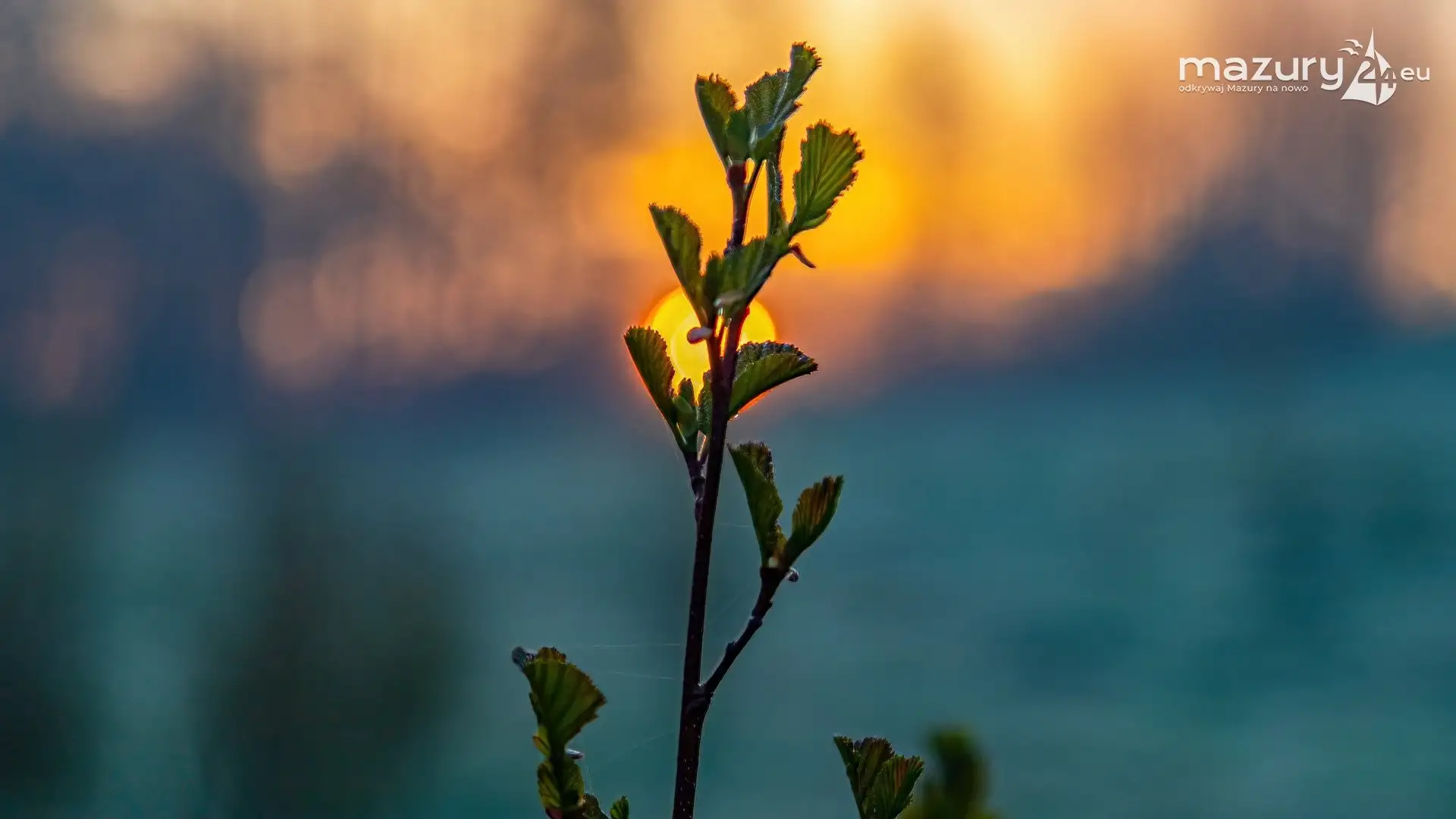 Wschód słońca z drona nad jeziorem Wojnowo
