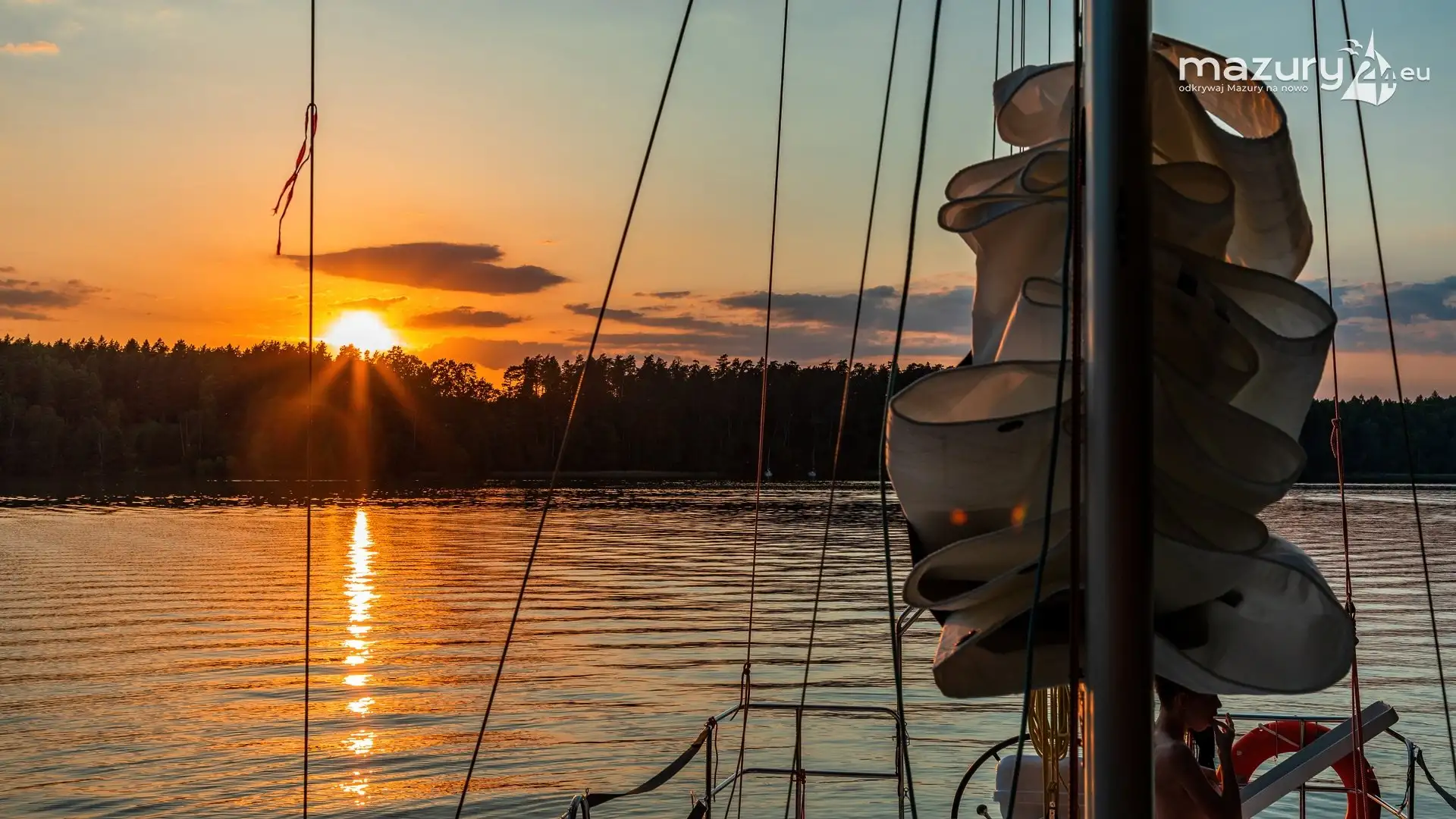 Wieczorny zachód podczas rejsu po ryńskim, czerwiec 2021