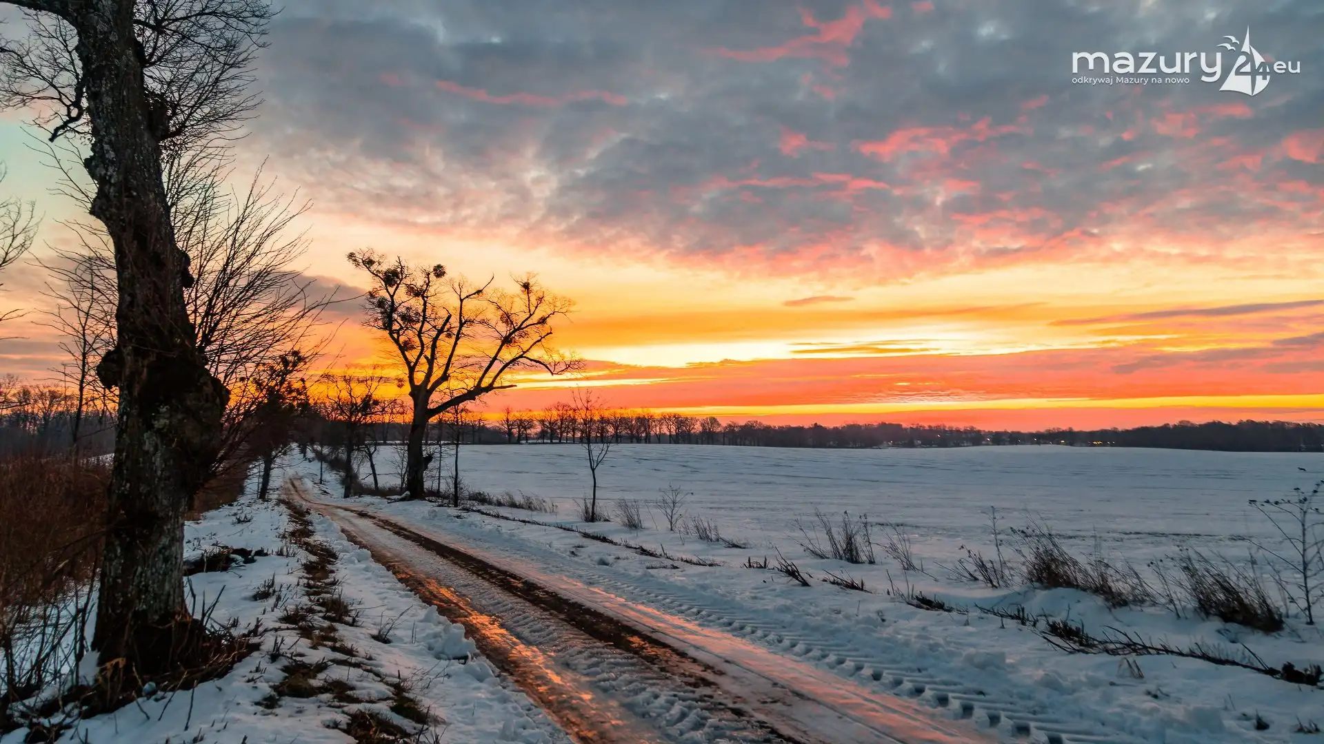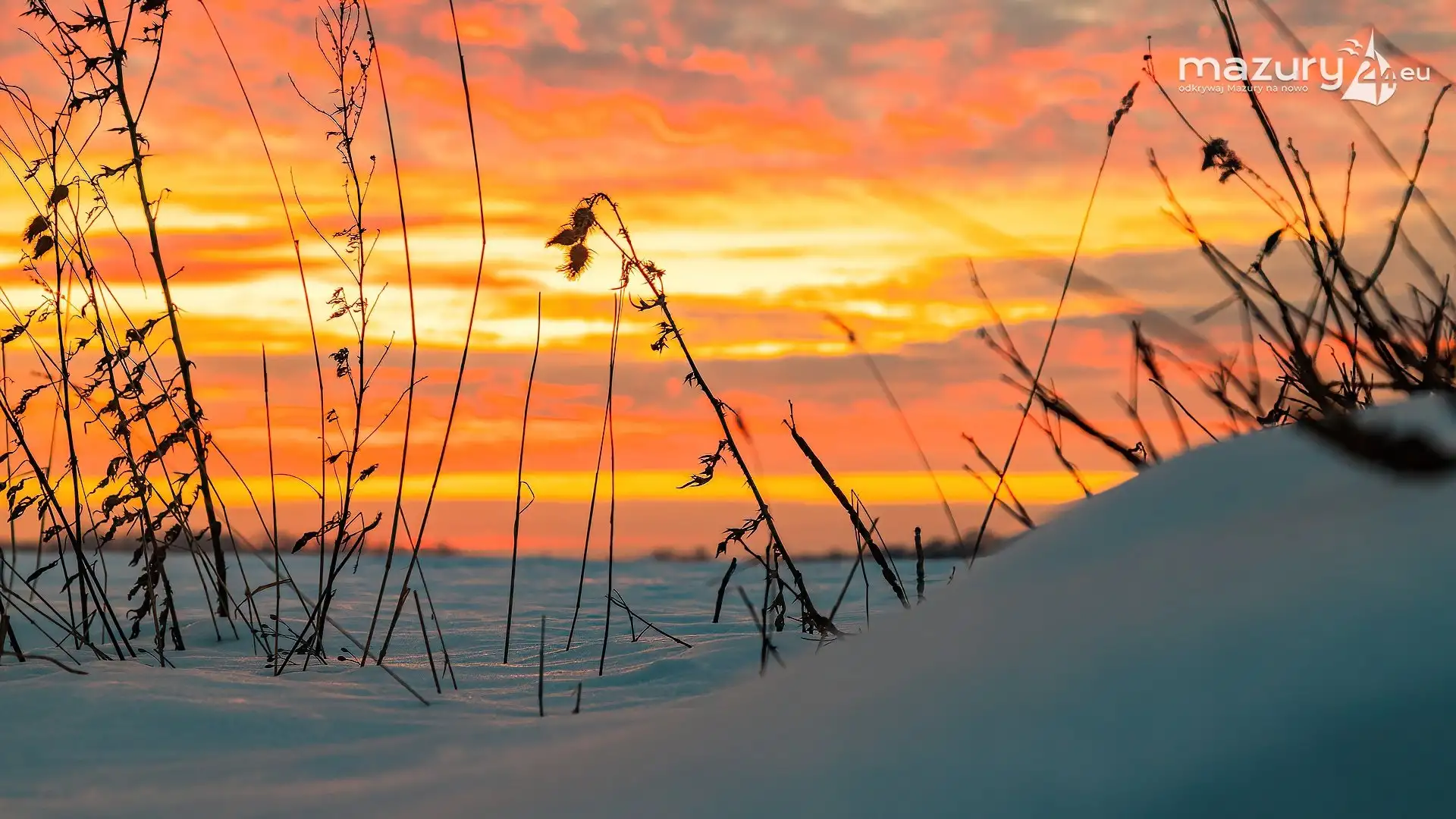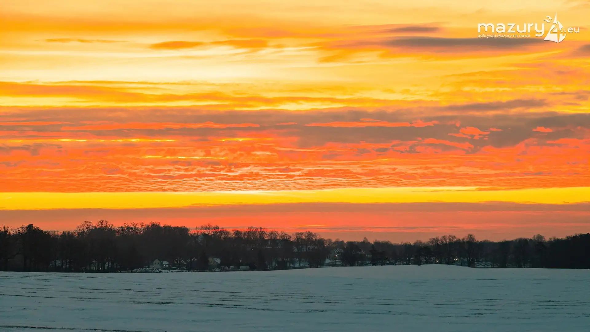 Ostatnie dni to wysyp pięknych zimowych galerii. Tym razem niesamowity wschód słońca nad mazurskimi polami wykonany w okolicach Sztynortu. Celowo pokazujemy Wam dziś Mazury bez jezior, gdyż jak się okazuje magia Mazur działa także poza nimi, a one... stają się taką wisienką na torcie :)