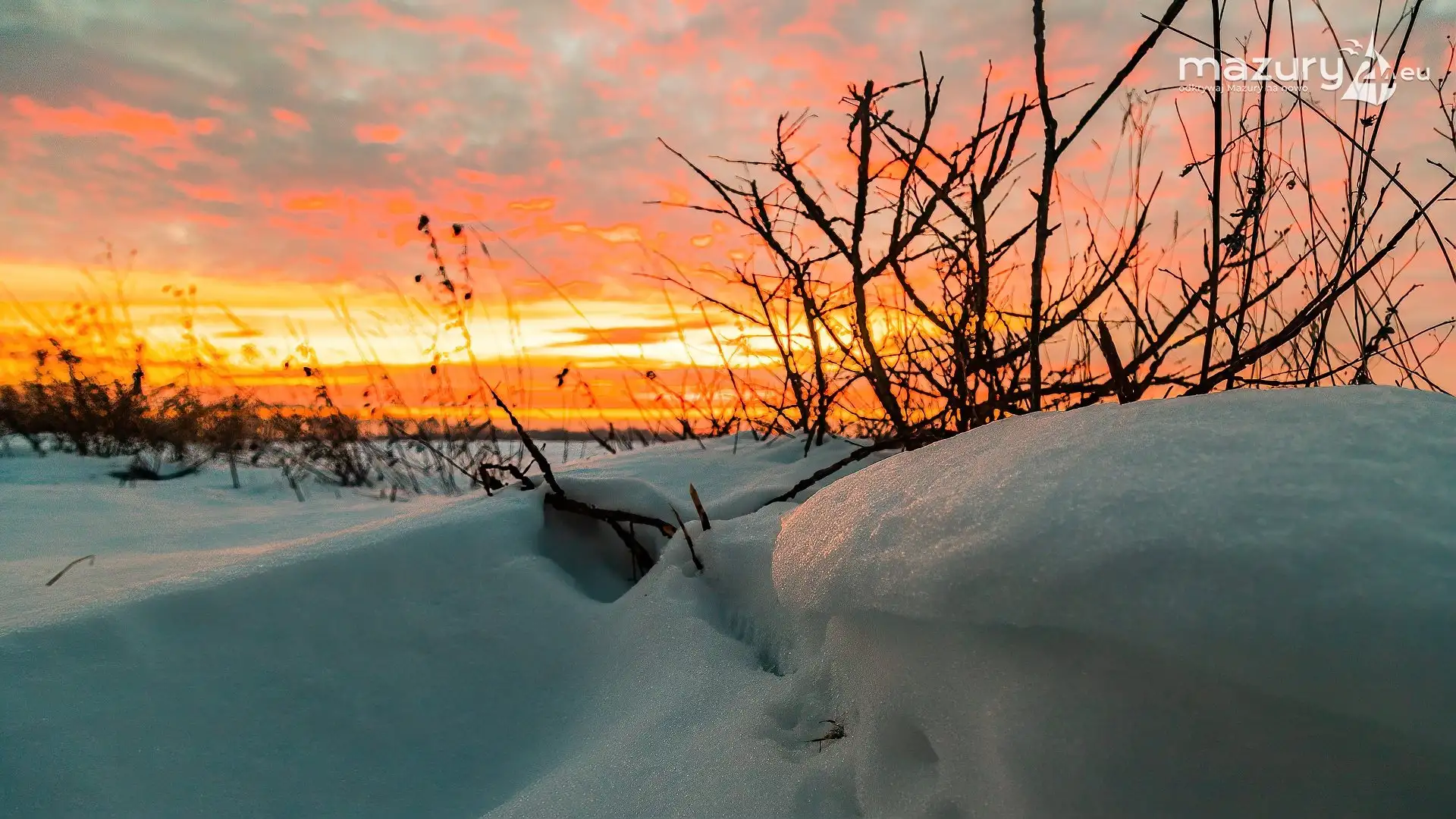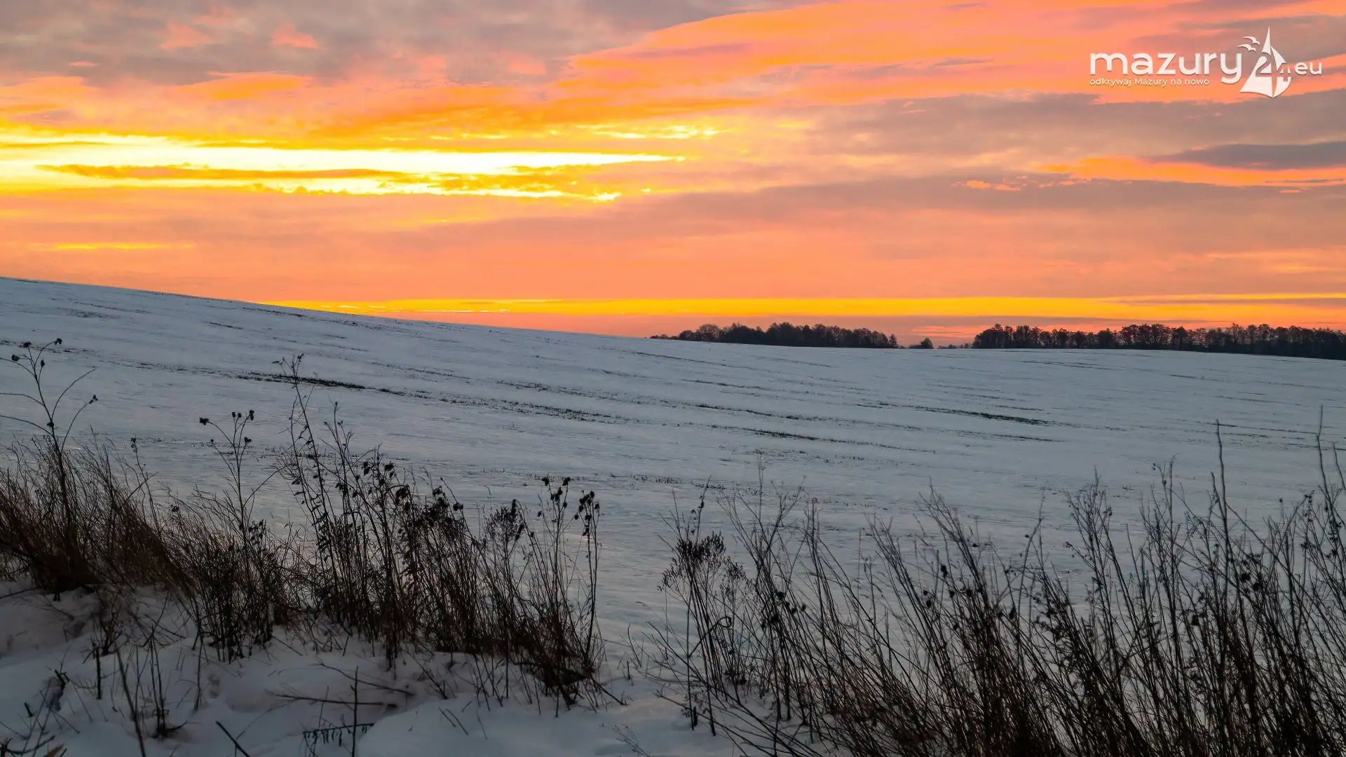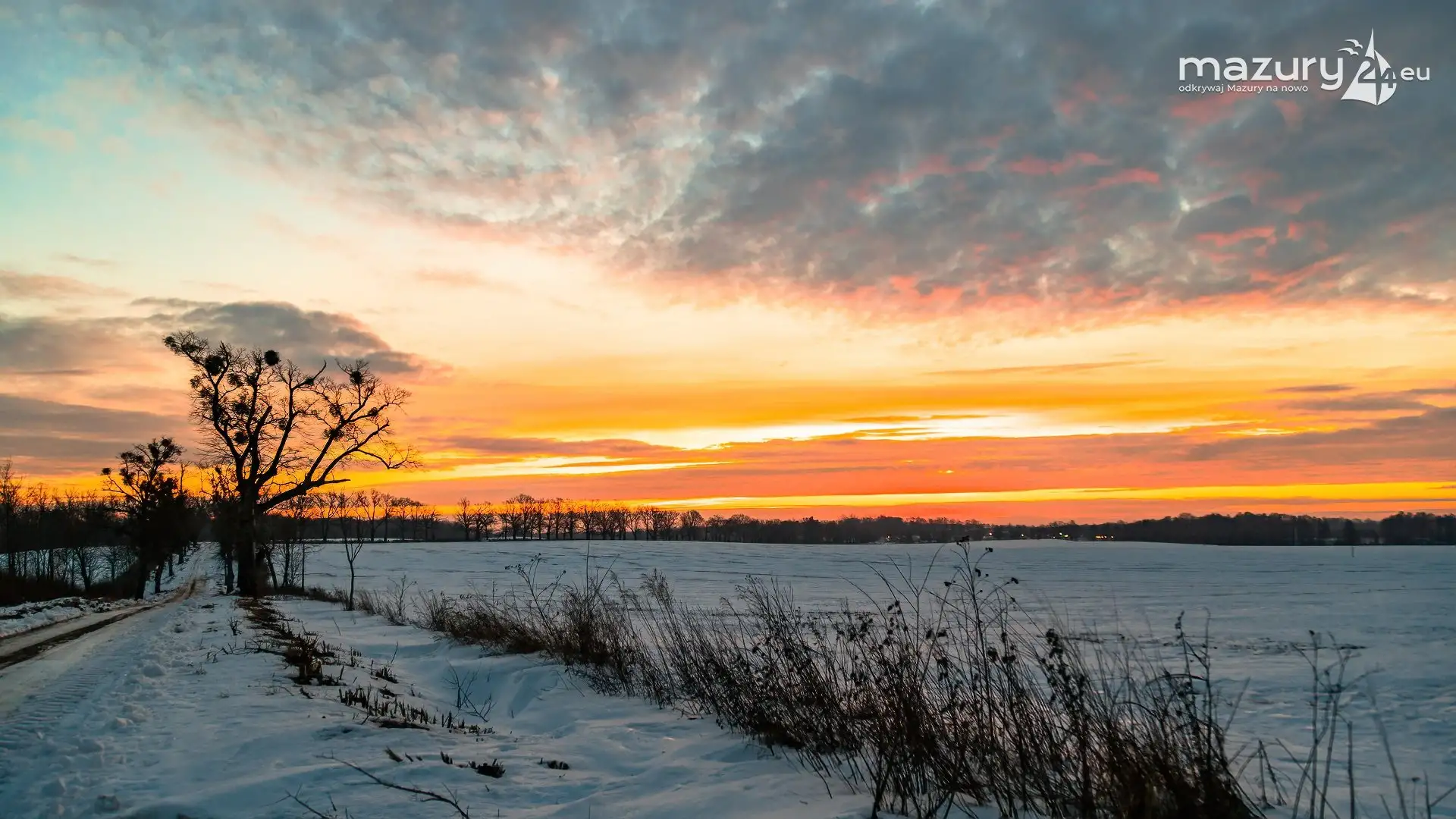 Ostatnie dni to wysyp pięknych zimowych galerii. Tym razem niesamowity wschód słońca nad mazurskimi polami wykonany w okolicach Sztynortu. Celowo pokazujemy Wam dziś Mazury bez jezior, gdyż jak się okazuje magia Mazur działa także poza nimi, a one... stają się taką wisienką na torcie :)