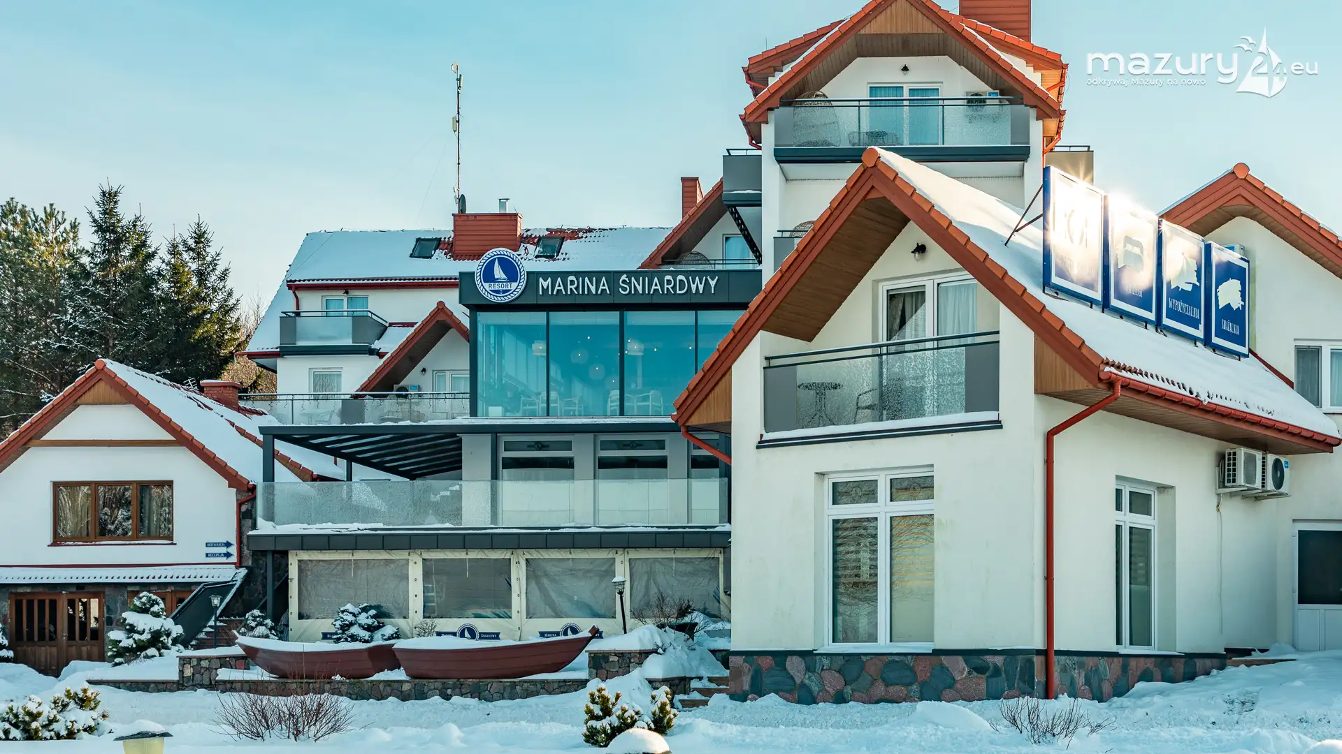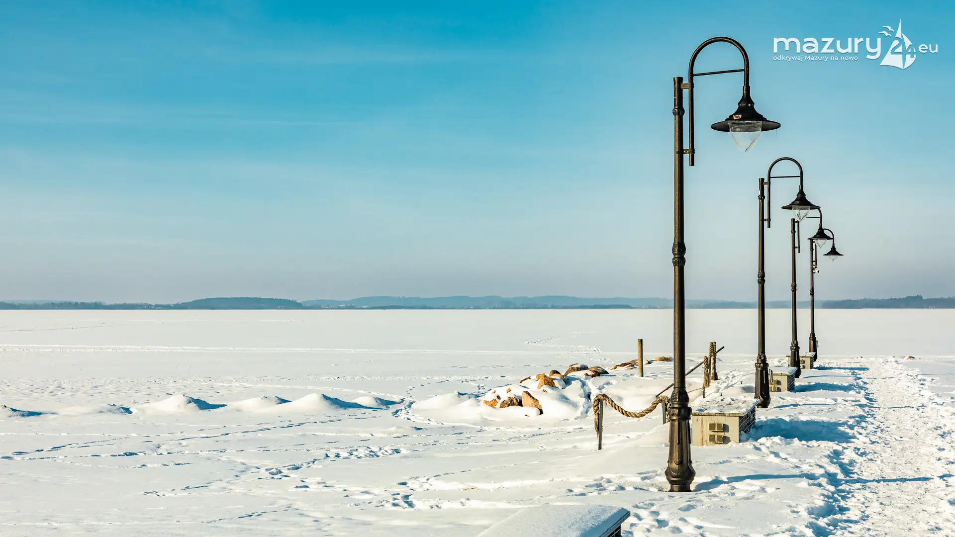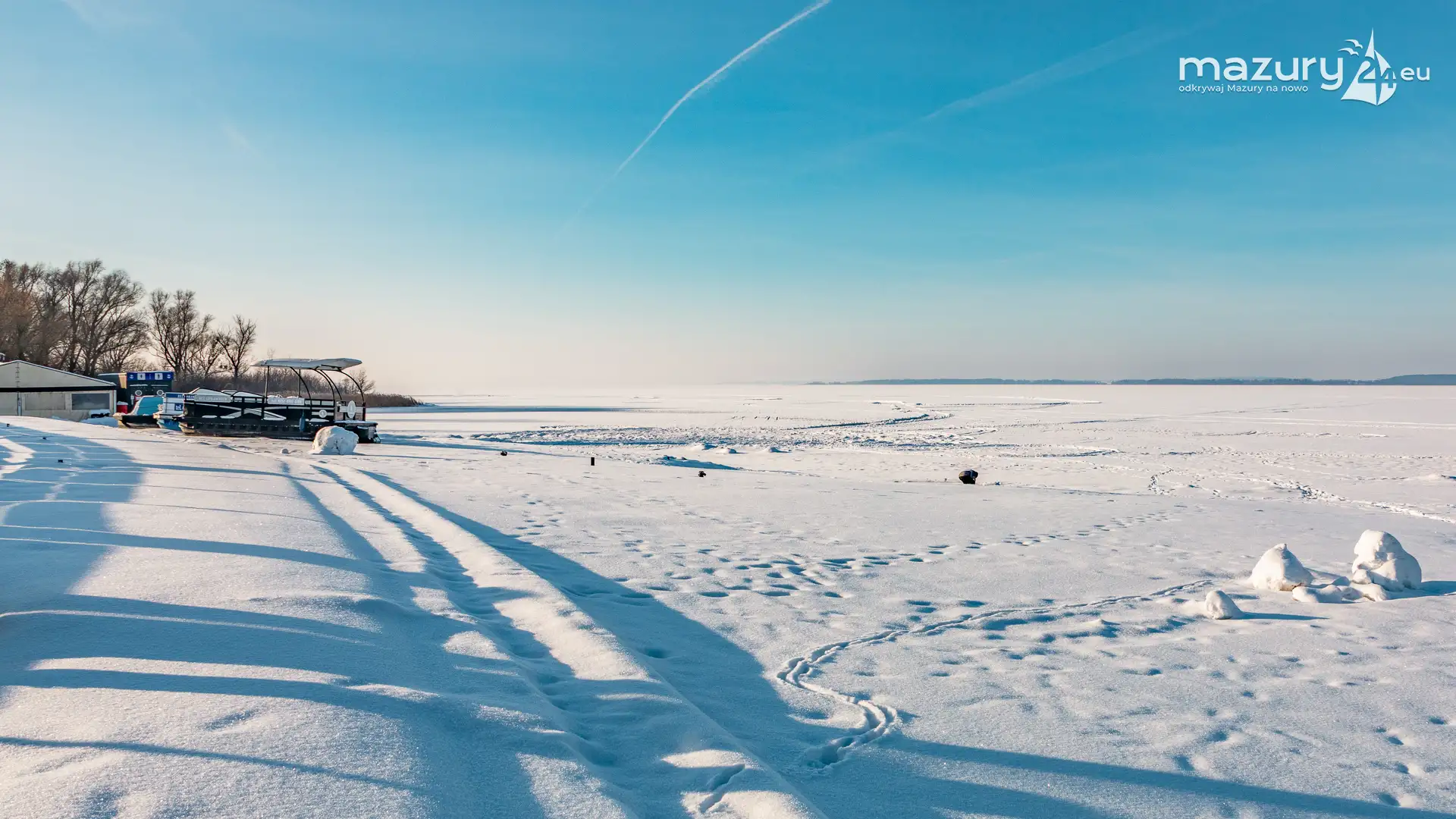 W drugiej połowie stycznia, słońce na kilka dni przebiło się przez gęste chmury, motywując nas do objechania skutych lodem i zasypanych mazurskich portów i przystani. Tak trafiliśmy do portu naszego partnera - Mariny Śniardwy w Nowych Gutach, oczywiście nad jeziorem Śniardwy. Jezioro zamarznięte po horyzont, tylko jeszcze wzmocniło odczucie wielkości tego akwenu.