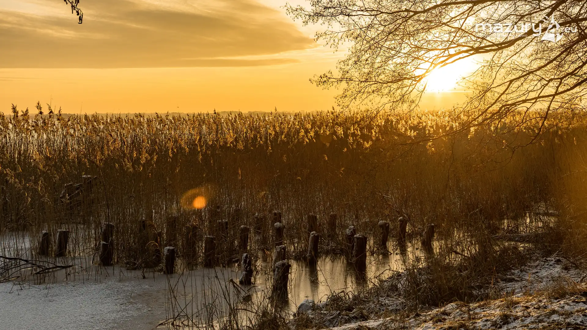 Wschód słońca w Strandzie nad jeziorem Kisajno