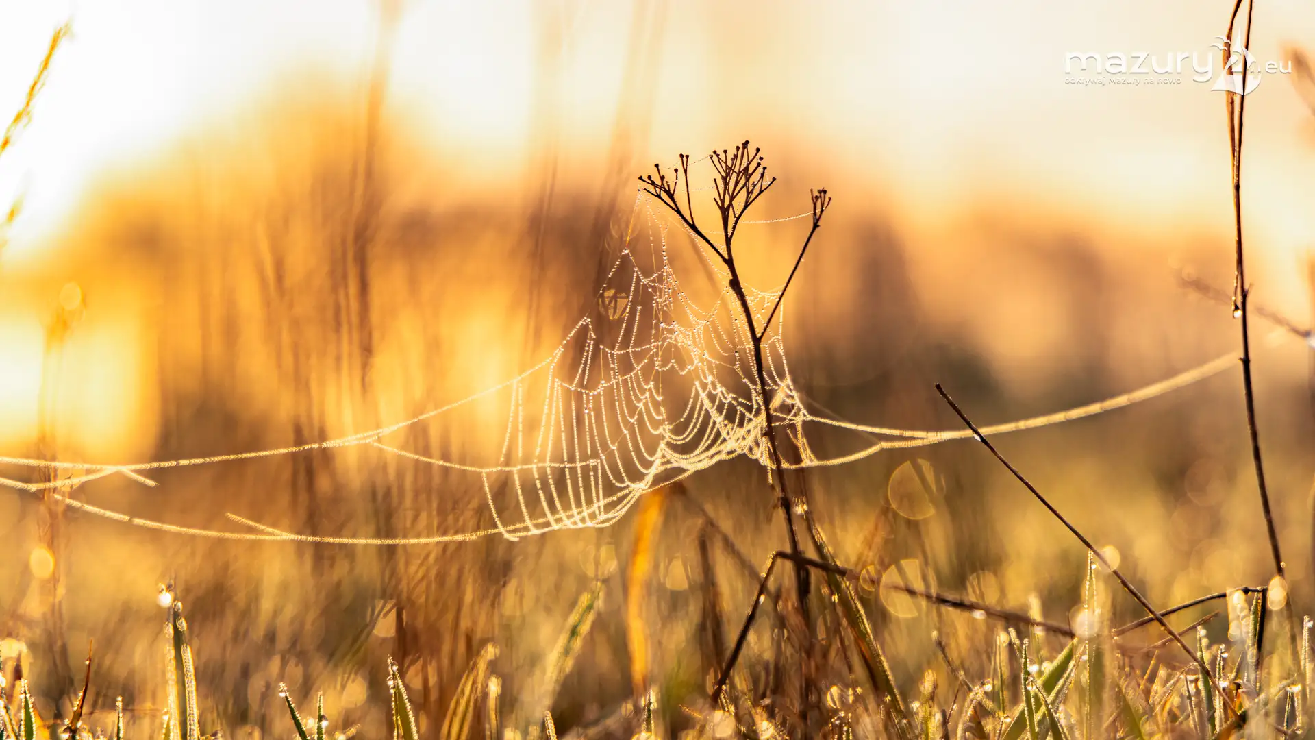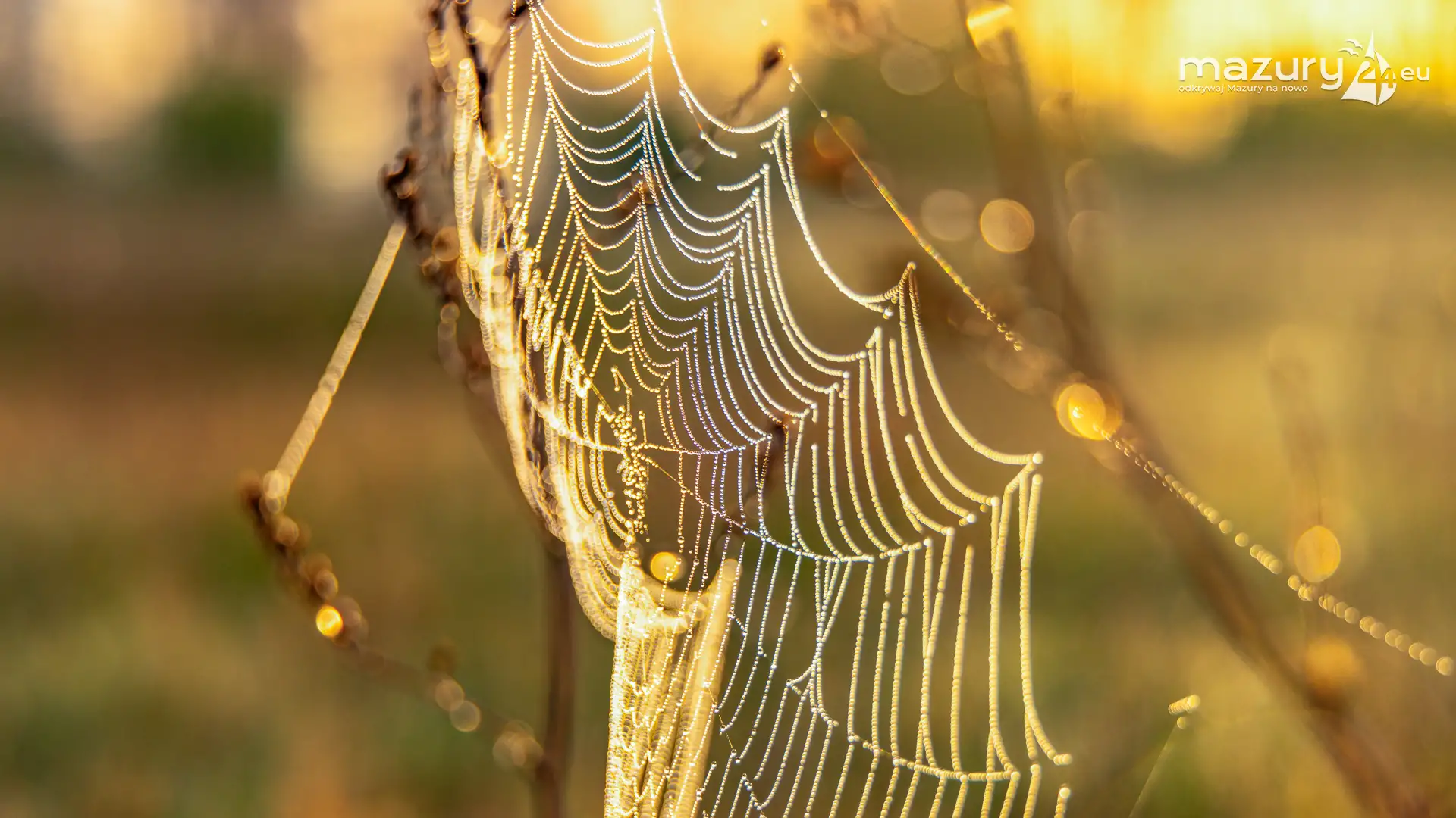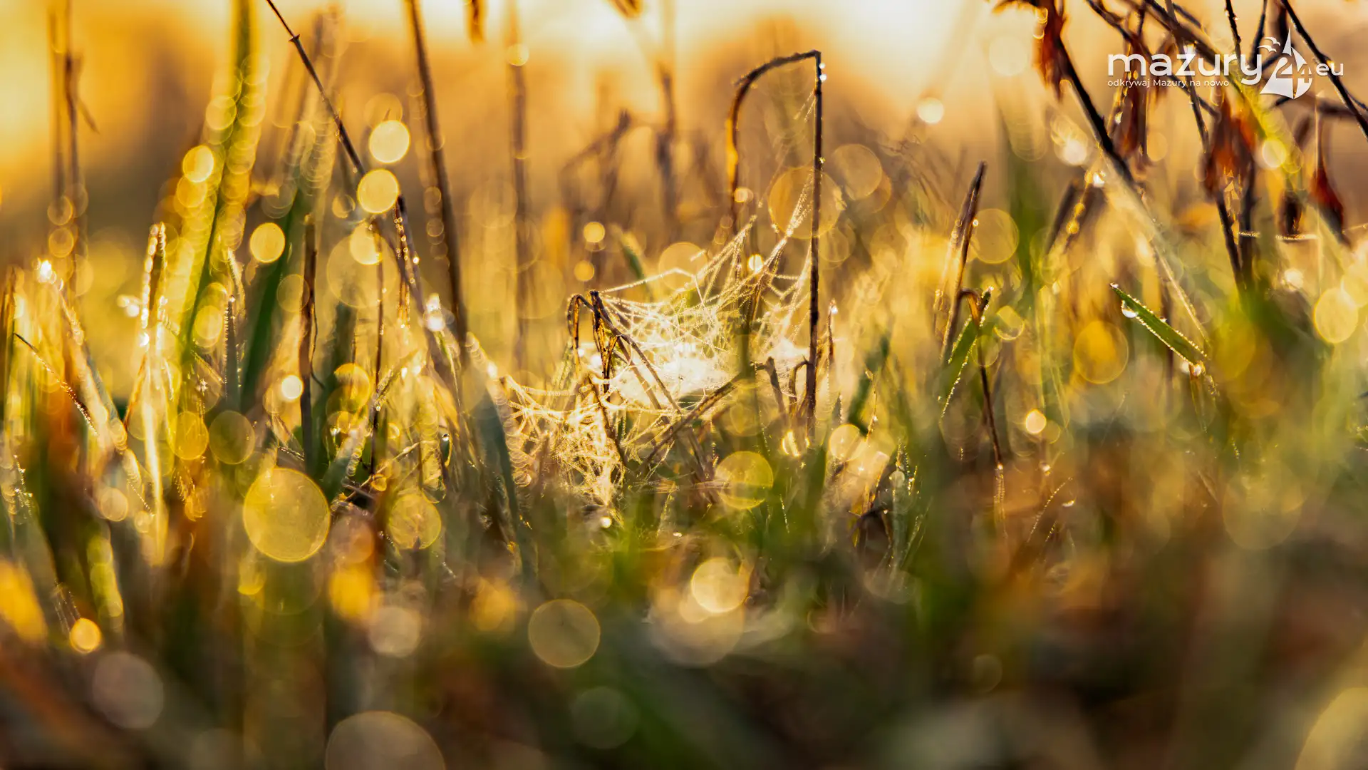Mazury to taki fotograficzny sklep z 1001 drobiazgami. Można tu fotografować wszystko co się rusza i błyszczy pięknem na stałe. W tym przypadku Arka zafascynowały pajęczyny i wiosenna rosa w okolicach jeziora Dobskiego przy wsi Doba. Wschód słońca dodał właściwych, złotych kolorów... Miłej fascynacji mazurską przyrodą...