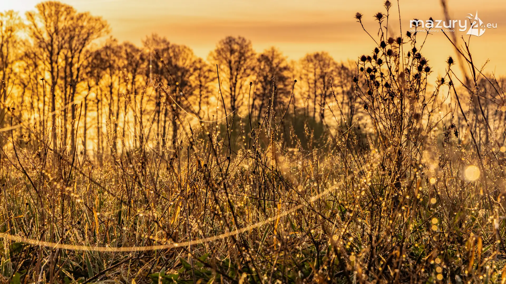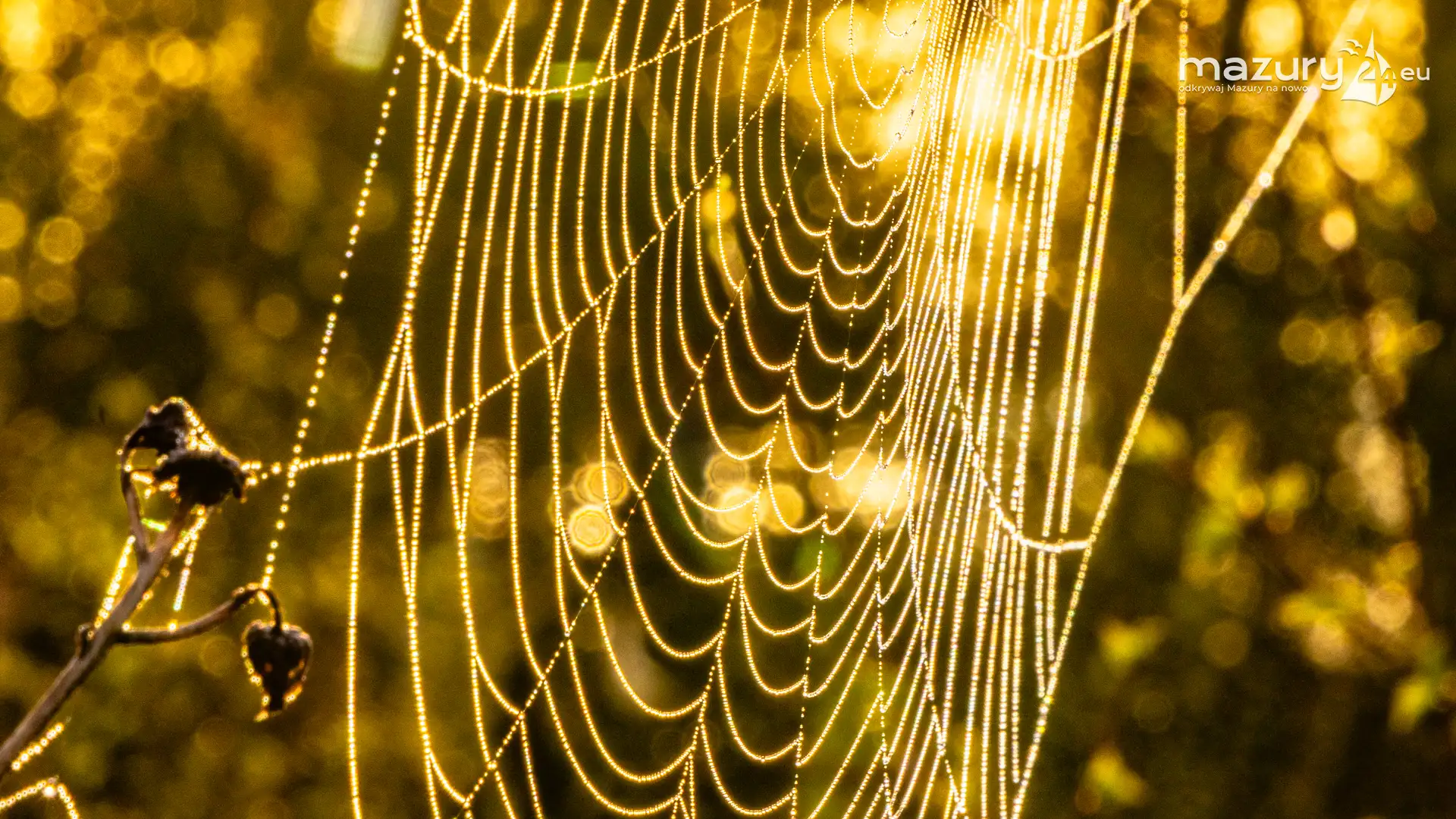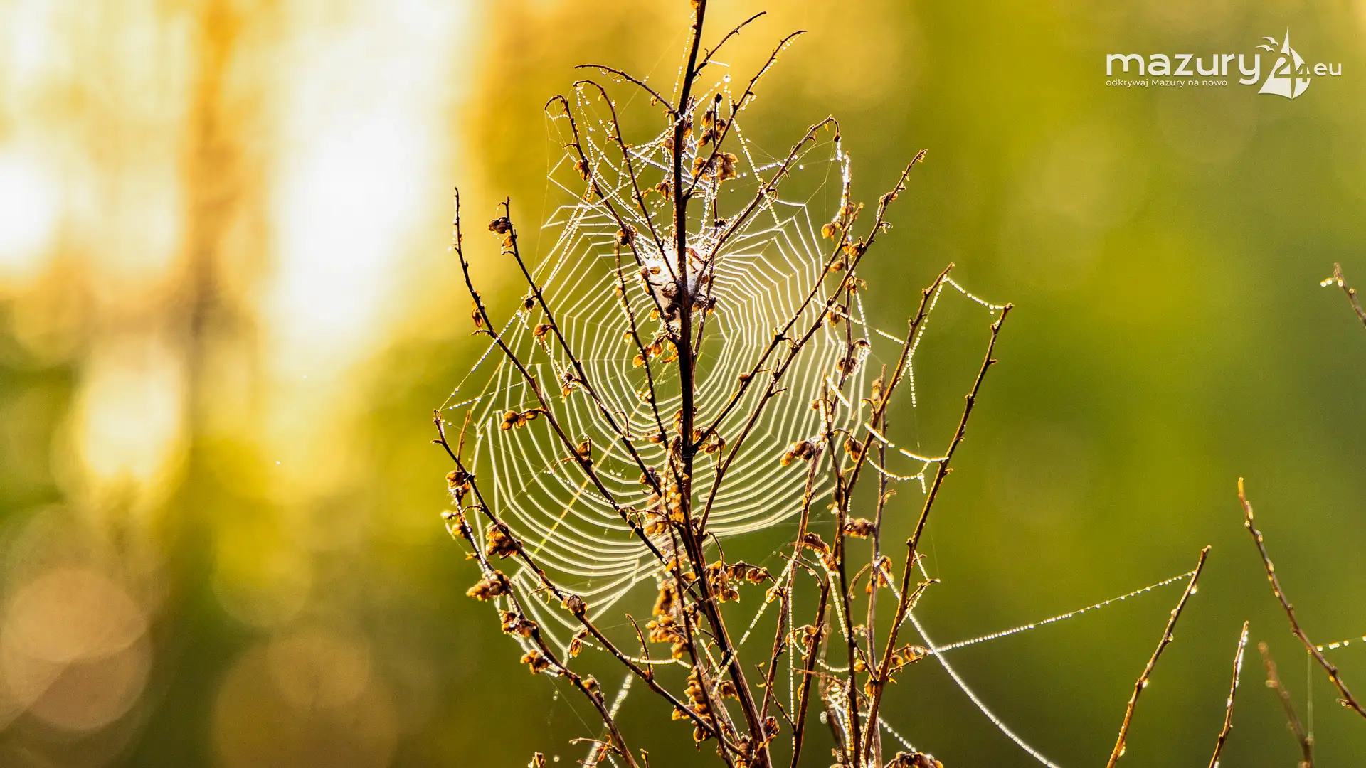 Mazury to taki fotograficzny sklep z 1001 drobiazgami. Można tu fotografować wszystko co się rusza i błyszczy pięknem na stałe. W tym przypadku Arka zafascynowały pajęczyny i wiosenna rosa w okolicach jeziora Dobskiego przy wsi Doba. Wschód słońca dodał właściwych, złotych kolorów... Miłej fascynacji mazurską przyrodą...