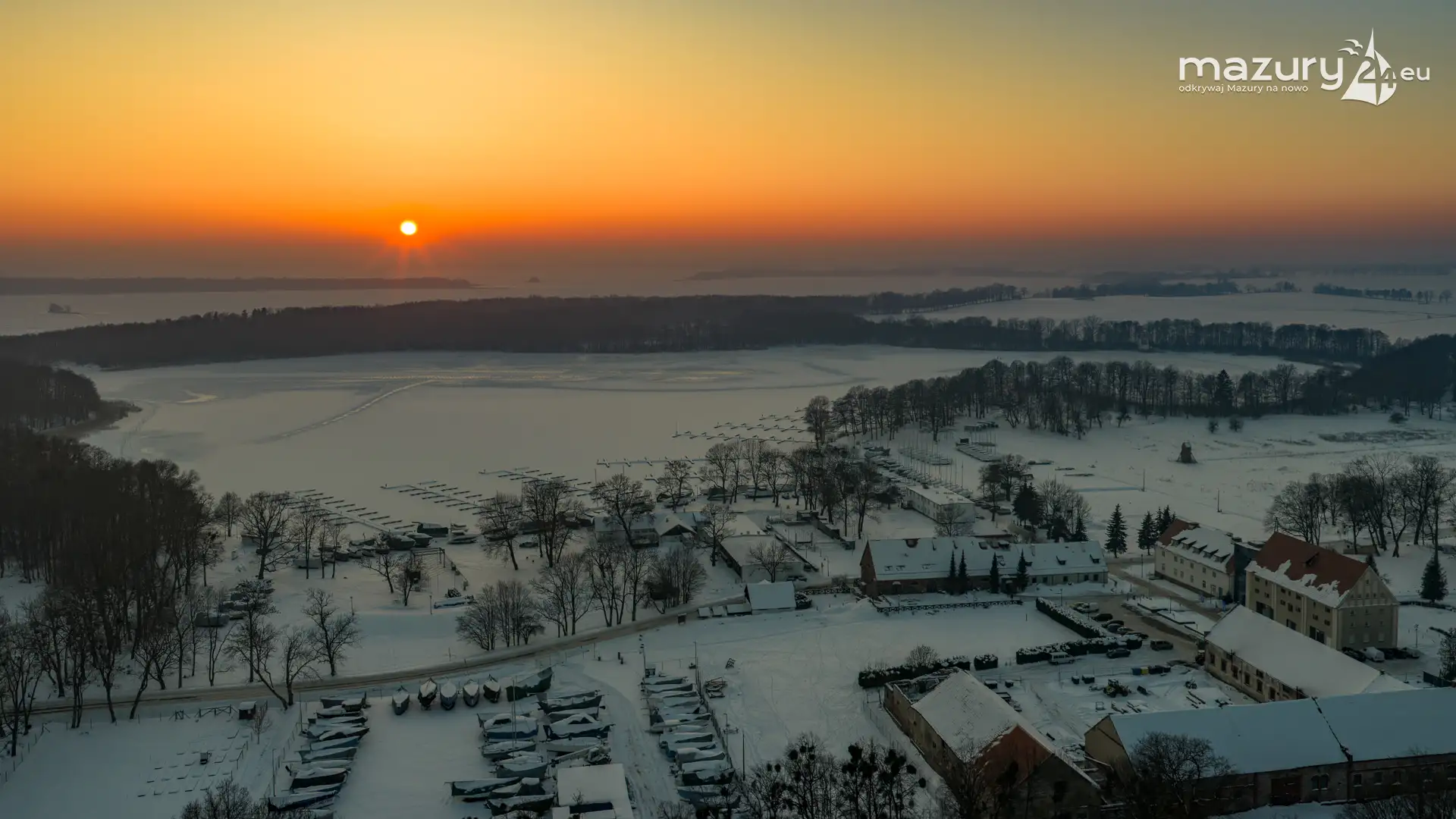 Zachód słońca nad jeziorem Bocznym z drona, styczeń 2026 r.