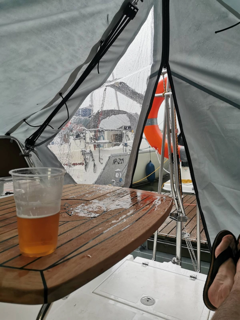 Duży, dedykowany namiot rufowy – pełne zamknięcie rufy (widoczny na zdjęciach)